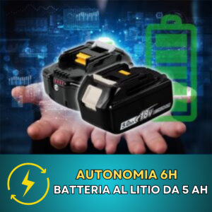 AirPro è dotato di batterie al litio 48V da 9000mAh che permettono di utilizzare il soffiatore per 2 ore con una sola carica e senza avere scomodi cavi da gestire.